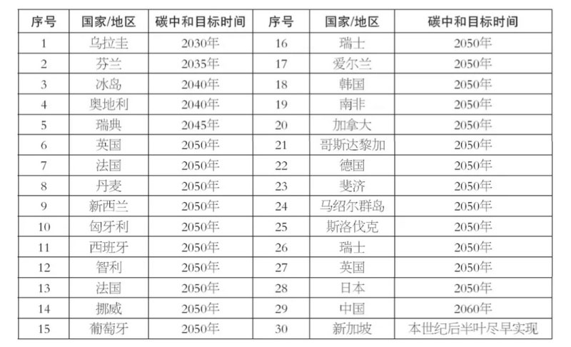 表1 全球已設(shè)定碳中和目標(biāo)時間的國家/地區(qū)