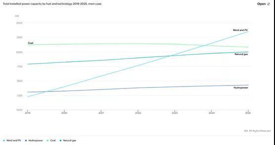 2023年風(fēng)能和太陽能的裝機容量將超過天然氣,2024年超過煤炭。到2025年,僅太陽能光伏發(fā)電就占了可再生能源新增裝機容量的60%,風(fēng)能占30%。在成本進一步下降的推動下,海上風(fēng)力發(fā)電量將大幅增加,到2025年將占新增風(fēng)力發(fā)電裝機的五分之一。海上風(fēng)電的增長將從歐洲轉(zhuǎn)移到中國和美國等仍有巨大潛力的新市場。全球范圍內(nèi)可再生能源的快速增長,要求政府加大對可再生能源的政策關(guān)注,以確保它們能夠安全、經(jīng)濟地融入電力系統(tǒng)。