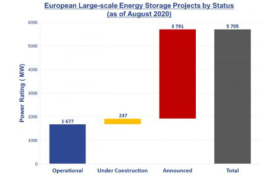 圖1. 截至2020年8月,按部署情況劃分的歐洲大型儲能項(xiàng)目