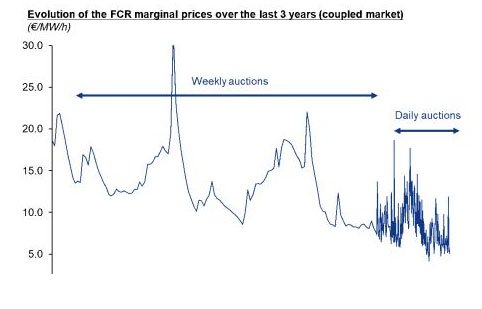圖4. 過去三年頻率控制(FCR)邊際價(jià)格的演變(歐元/MW/h)