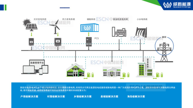 威勝能源提供的儲能方案有很多種,從電源側、電網(wǎng)側、到用戶側,威勝都有可以應用的方案,其他包括微電網(wǎng),從戶級到村級、到縣級到海島都有,還有分布式離網(wǎng)的儲能應用方案。