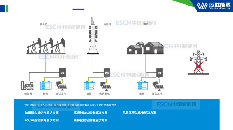 關于威勝的分布式離網(wǎng)系統(tǒng)解決方案的應用,近期做過一些油田磕頭機、污水處理的供電方案,還有森林防火和景區(qū)的。這里跟大家分享一下近期我們做的一些應用,這是我們在西湖邊上的一個驛站應用,做了智能能源系統(tǒng),系統(tǒng)包括光伏儲能和智能調度以及綜合利用。這是近期做的鐵塔移動基站的光伏儲能項目,既有離網(wǎng)的,也有并離網(wǎng)的,是符合國家大基建要求的項目,主要是提高基站供電的可靠性和經(jīng)濟性,讓移動基站供電更安全、更綠色、更高效。