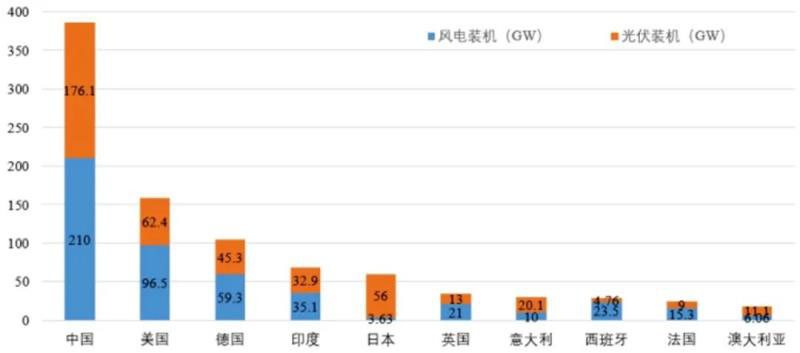 圖1 全球新能源(風(fēng)電、光伏)裝機(jī)排名