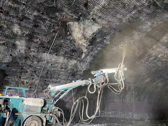 在地下廠房頂拱,一張由鋼筋編織的6000平方米左右的巨網(wǎng)高高掛起,鋼筋網(wǎng)中插入近4000根6米或8米的系統(tǒng)錨桿。9月30日,地下廠房第一層開挖完成并進行局部支護。10月以來,寧海施工局嚴格把握工程建設程序與規(guī)定,以安全生產(chǎn)為首要宗旨,快中求穩(wěn),以“慢”保穩(wěn),對第一層頂拱實施全面掛鋼筋網(wǎng)支護;同時,著手廠房第二層開挖準備。