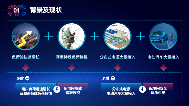 隨著國(guó)家配電網(wǎng)建設(shè)改造行動(dòng)計(jì)劃和湖南點(diǎn)三年行動(dòng)計(jì)劃一系列措施落地,湖南配電網(wǎng)的建設(shè)取得了長(zhǎng)遠(yuǎn)的發(fā)展進(jìn)步。2015到2020年戶均配電容量1.41上升到2.08,農(nóng)村電網(wǎng)1.09上升到1.71,供電可考慮99.71上升到99.83,配電網(wǎng)的建設(shè)取得了長(zhǎng)足的進(jìn)步。同時(shí)看出來,隨著負(fù)荷的快速增長(zhǎng),以及分布式電源、電動(dòng)汽車的大量接入,配電網(wǎng)業(yè)面臨很多困難。作為電網(wǎng)公司有兩大方面的主要矛盾: