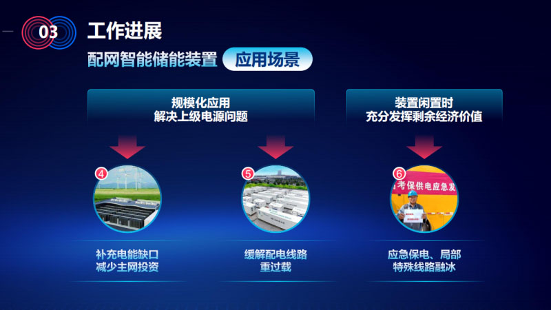 進(jìn)一步挖掘用戶側(cè)儲(chǔ)能裝置應(yīng)用場(chǎng)景,剛才提到的,特別是租賃模式下的裝備,在電網(wǎng)用戶這邊不租的時(shí)候,裝置也不能閑著,作為重要場(chǎng)合的應(yīng)急電源,作為保電的裝置,以及解決區(qū)域性負(fù)荷缺口,延緩主網(wǎng)投資發(fā)揮重要作用。