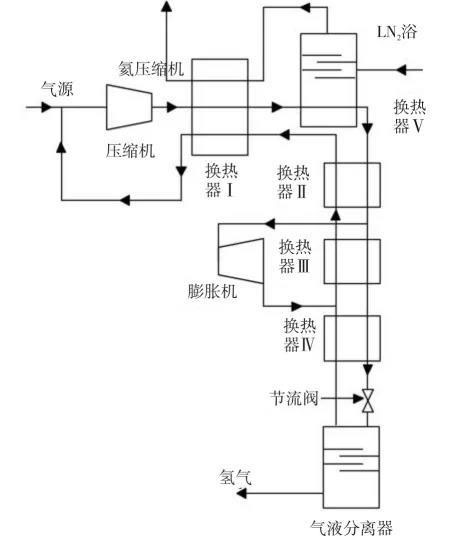 圖1 氫膨脹制冷氫液化循環(huán)流程