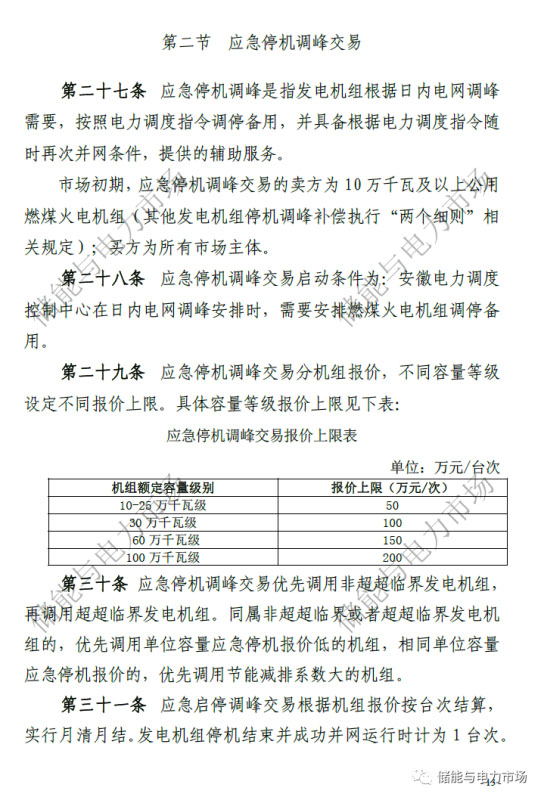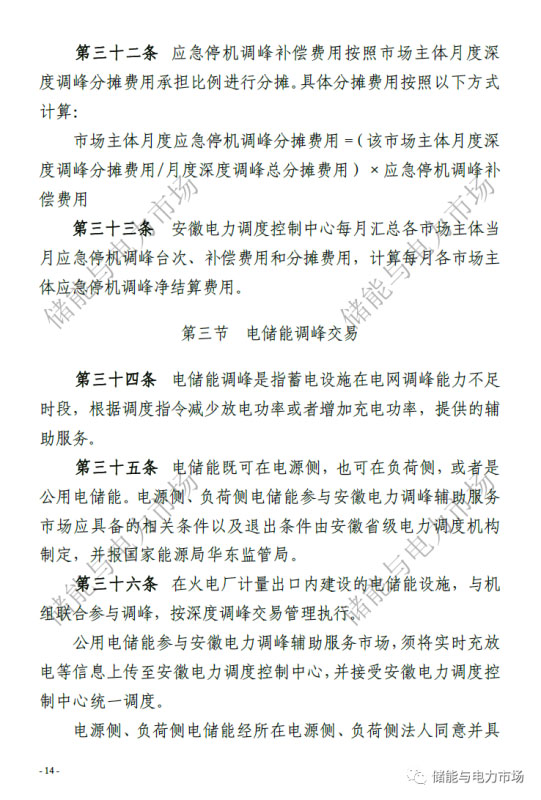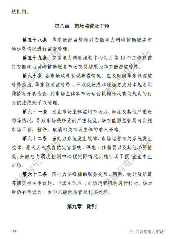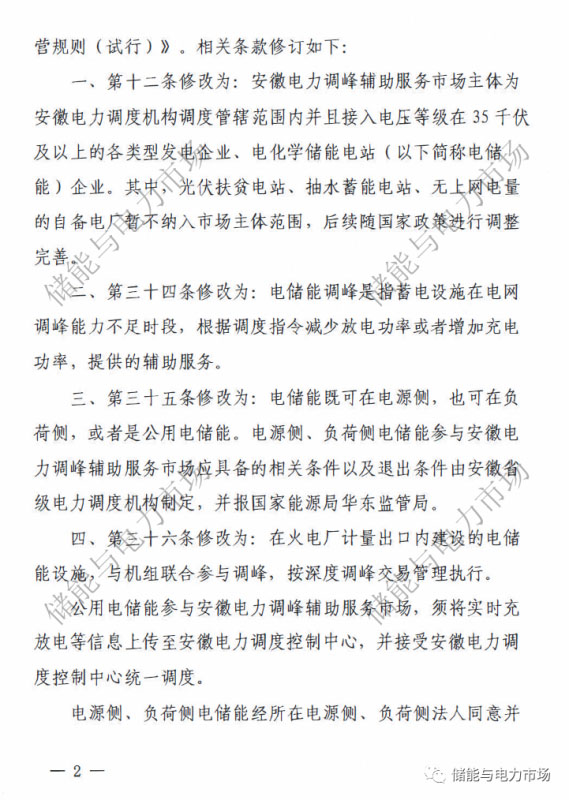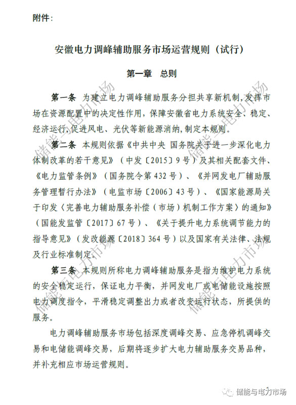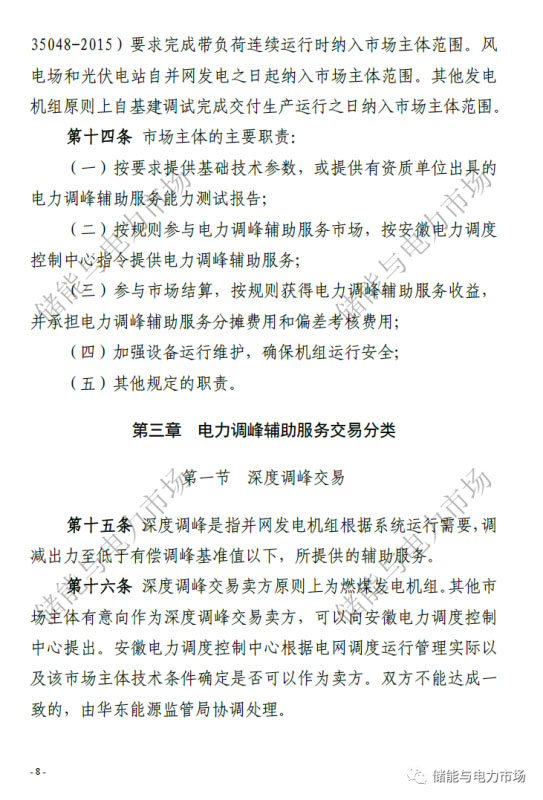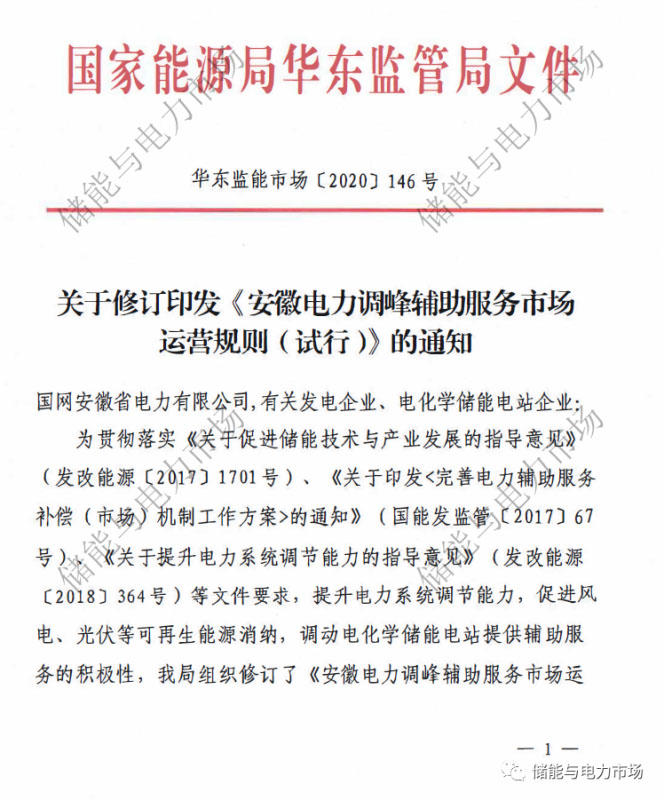 中國儲(chǔ)能網(wǎng)訊:近日,國家能源局華東監(jiān)管局發(fā)布了“關(guān)于修訂印發(fā)《安徽電力調(diào)峰輔助服務(wù)市場(chǎng)運(yùn)營規(guī)則(試行)》的通知”,并重新印發(fā)了《安徽電力調(diào)峰輔助服務(wù)市場(chǎng)運(yùn)營規(guī)則(試行)》。