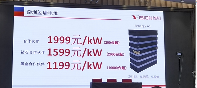 12月3日,在新品發(fā)布會上,雄韜旗下全資子公司氫瑞科技在發(fā)布電堆新品的同時,拋出了一個1199元/kw的最低價,給電堆價格戰(zhàn)再添了一把火。