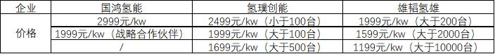 氫云鏈整理了目前三家企業(yè)的報價情況,見表1.