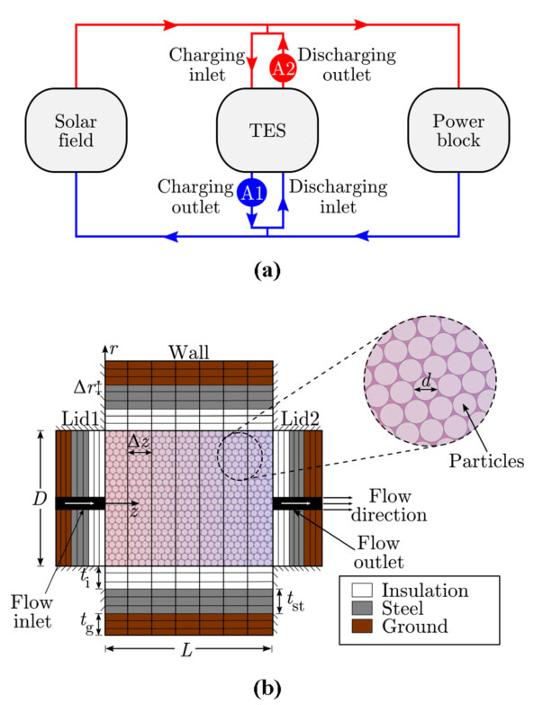 聚光太陽(yáng)能(CSP)與熱能存儲(chǔ)(TES)可以在我們向可持續(xù)能源系統(tǒng)過渡進(jìn)程中發(fā)揮關(guān)鍵作用,這是由于它可以在相對(duì)低的成本下實(shí)現(xiàn)大規(guī)模的能量存儲(chǔ),并持續(xù)發(fā)電一整天。目前,商業(yè)聚光太陽(yáng)能電站廣泛采用帶熱罐和冷罐的雙罐蓄冷蓄熱技術(shù)。與雙罐蓄冷蓄熱器相比,填充床蓄冷蓄熱成本較低,但效用因數(shù)較低。