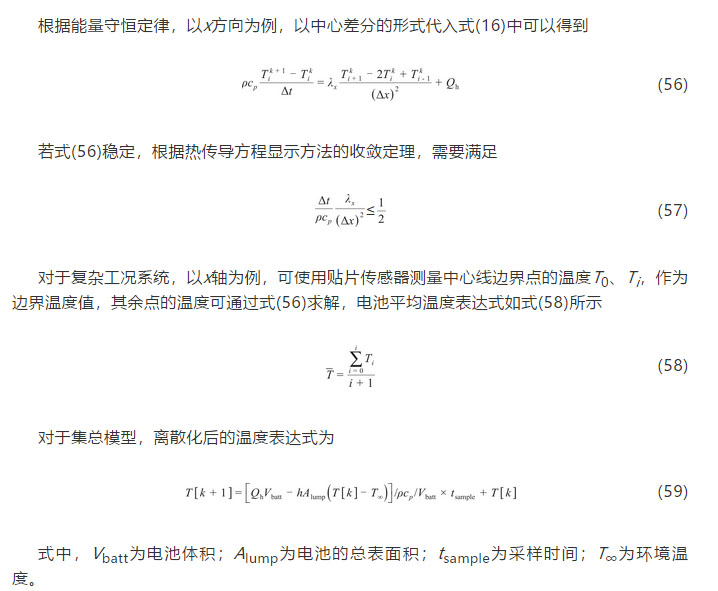 下述的電化學(xué)模型用來(lái)描述單體電池內(nèi)部的反應(yīng)過(guò)程,可以計(jì)算電池體的產(chǎn)熱速率;熱模型可以描述電池體的熱傳導(dǎo)過(guò)程,計(jì)算電池體的溫度。