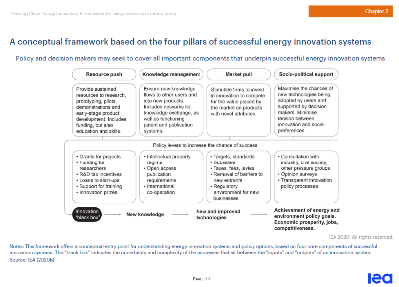 基于成功的能源創(chuàng)新系統(tǒng)的四個(gè)支柱提出的概念性框架:政策和決策者可能會(huì)試圖涵蓋支持成功的能源創(chuàng)新系統(tǒng)的所有重要組成部分。