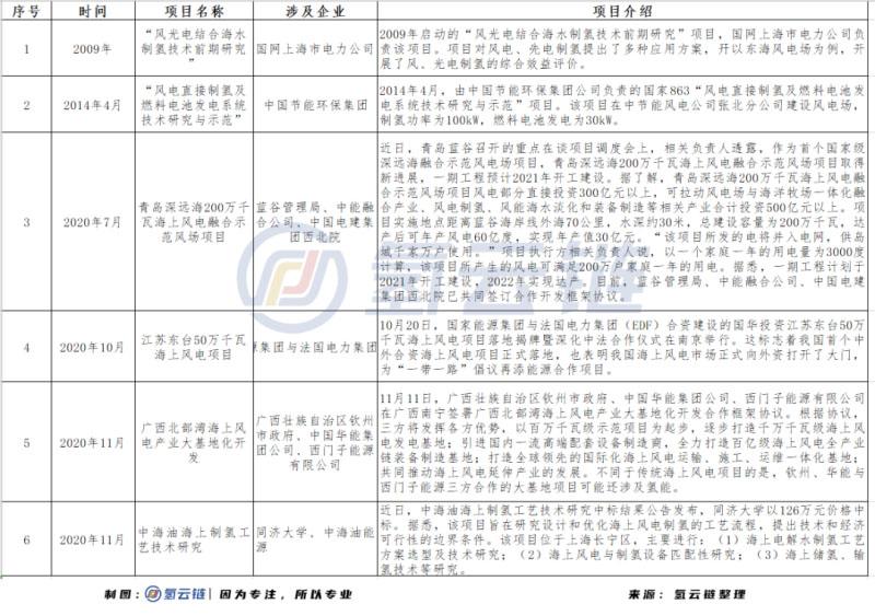 2、我國海上風(fēng)電制氫項目