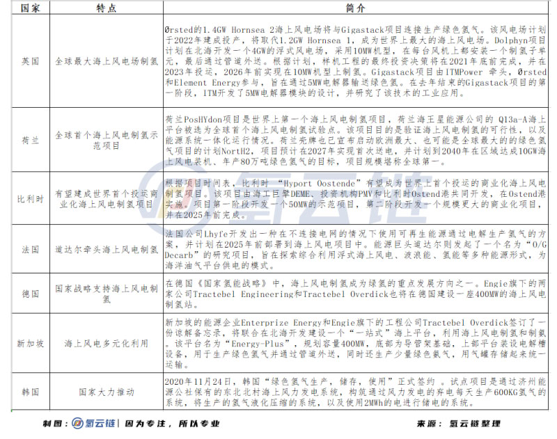 除了歐洲外,韓國、新加坡等國家也在積極布局海上風(fēng)電制氫項目,尋找綠氫生產(chǎn)新方向。