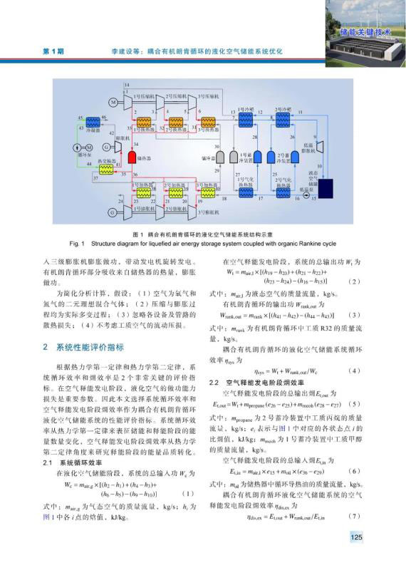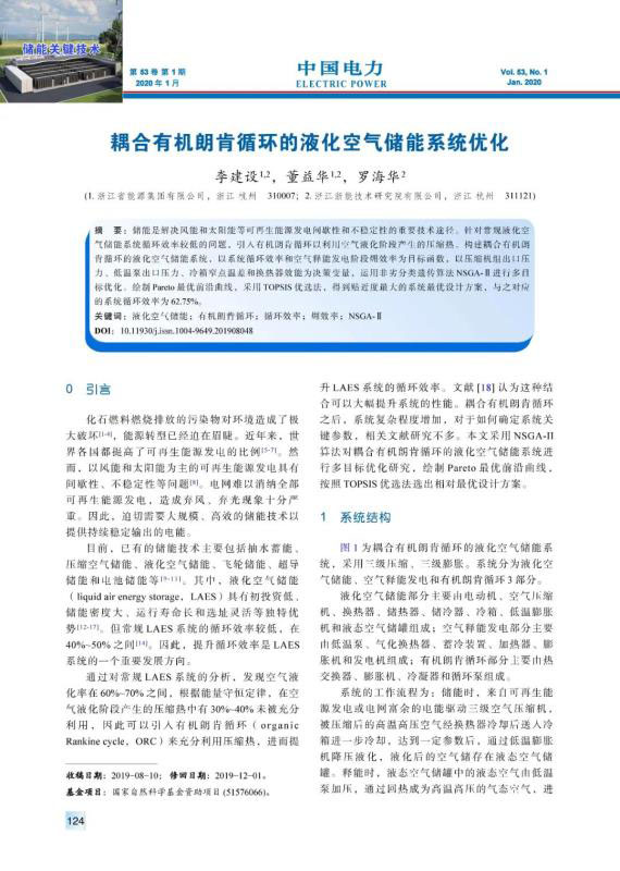 儲能是解決風(fēng)能和太陽能等可再生能源發(fā)電間歇性和不穩(wěn)定性的重要技術(shù)途徑。針對常規(guī)液化空氣儲能系統(tǒng)循環(huán)效率較低的問題,引入有機朗肯循環(huán)以利用空氣液化階段產(chǎn)生的壓縮熱。構(gòu)建耦合有機朗肯循環(huán)的液化空氣儲能系統(tǒng),以系統(tǒng)循環(huán)效率和空氣釋能發(fā)電階段?效率為目標函數(shù),以壓縮機組出口壓力、低溫泵出口壓力、冷箱窄點溫差和換熱器效能為決策變量,運用非劣分類遺傳算法NSGA-Ⅱ進行多目標優(yōu)化。繪制Pareto最優(yōu)前沿曲線,采用TOPSIS優(yōu)選法,得到貼近度最大的系統(tǒng)最優(yōu)設(shè)計方案,與之對應(yīng)的系統(tǒng)循環(huán)效率為62.75%。