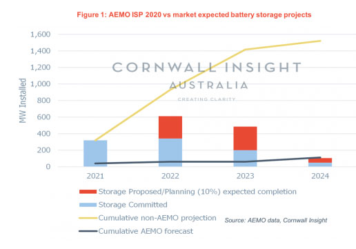 研究報(bào)告指出,根據(jù)其綜合系統(tǒng)計(jì)劃,澳大利亞能源市場(chǎng)運(yùn)營(yíng)商(AEMO)預(yù)測(cè)到2024年投入使用的電池儲(chǔ)能系統(tǒng)低于Cornwall Insight Australia公司的預(yù)測(cè)。