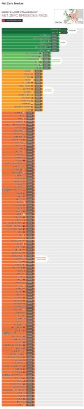 Energy & Climate Intelligence Unit 機構(gòu)對數(shù)十個國家和地區(qū)提出的凈零排放或碳中和實現(xiàn)目標(biāo)進行了統(tǒng)計并滾動更新。點擊此處查看最新數(shù)據(jù)