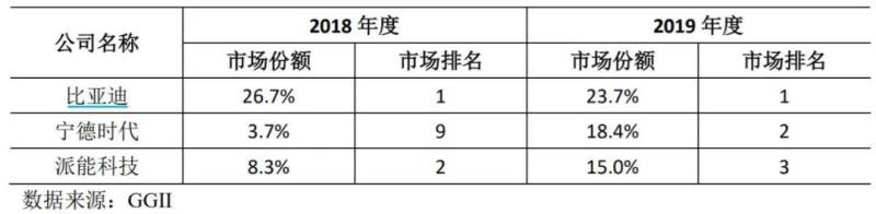根據(jù)GGII的統(tǒng)計(jì),2018年和2019年,公司與國(guó)內(nèi)主要競(jìng)爭(zhēng)對(duì)手的出貨量排名及市場(chǎng)份額情況如下表所示: