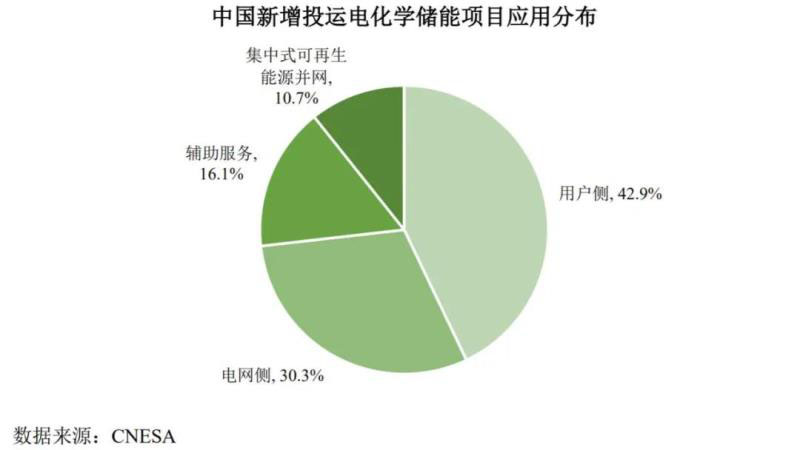 仍根據(jù)CNESA數(shù)據(jù),截至2018年,從中國(guó)累計(jì)投運(yùn)的電化學(xué)儲(chǔ)能項(xiàng)目的應(yīng)用分布上看,用戶側(cè)領(lǐng)域的裝機(jī)規(guī)模最大,為470.4MW,占比46.5%;電網(wǎng)側(cè)和集中式可再生能源并網(wǎng)分列二、三位,分別占比 21.4%和 17.8%。2018年,從中國(guó)新增投運(yùn)的電化學(xué)儲(chǔ)能項(xiàng)目的應(yīng)用分布上看,依然是用戶側(cè)領(lǐng)域的裝機(jī)規(guī)模最大,為 293.3MW,占比 42.9%,同比增長(zhǎng) 312.5%,電網(wǎng)側(cè)、輔助服務(wù) 和集中式可再生能源并網(wǎng)分列二至四位。