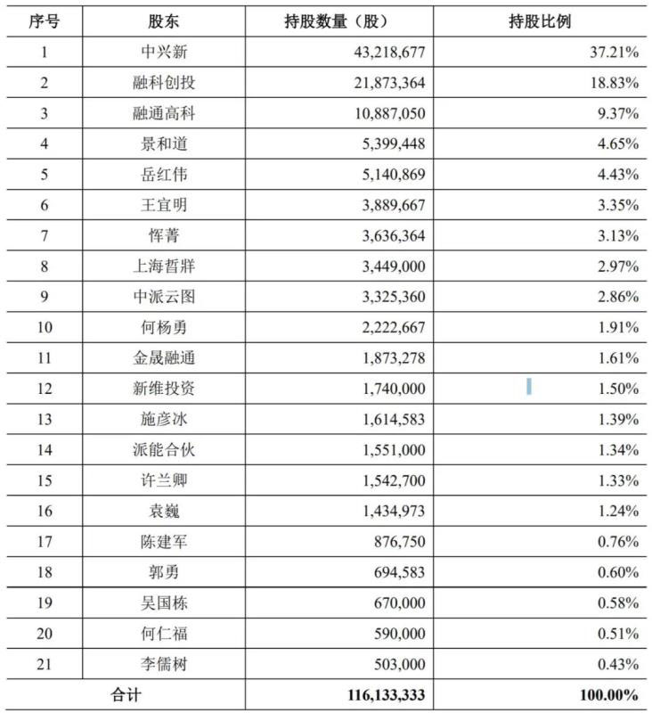 根據(jù)上海派能招股意向書(shū)披露,中興新通訊有限公司(以下簡(jiǎn)稱為“中興新”)持有公司 37.21%的股份,為公司控股股東(見(jiàn)下面表格)。