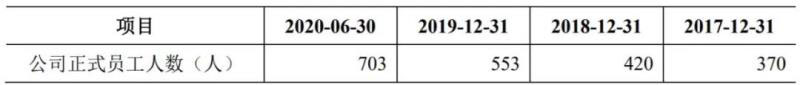 截至2020年6月30日,上海派能員工總數(shù)為703人;報(bào)告期內(nèi),各期期末員工人數(shù)逐年上升,上升幅度分別為 13.51%、31.67% 和 27.12%: