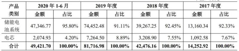 上海派能主營(yíng)業(yè)務(wù)突出,收入全部來(lái)源于儲(chǔ)能電池系統(tǒng)和電芯,其中儲(chǔ)能電池系統(tǒng)收入多年來(lái)占比均超過(guò)90%,具體如下表所示: