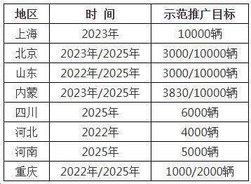我國部分省市區(qū)氫燃料電池汽車推廣目標(biāo)