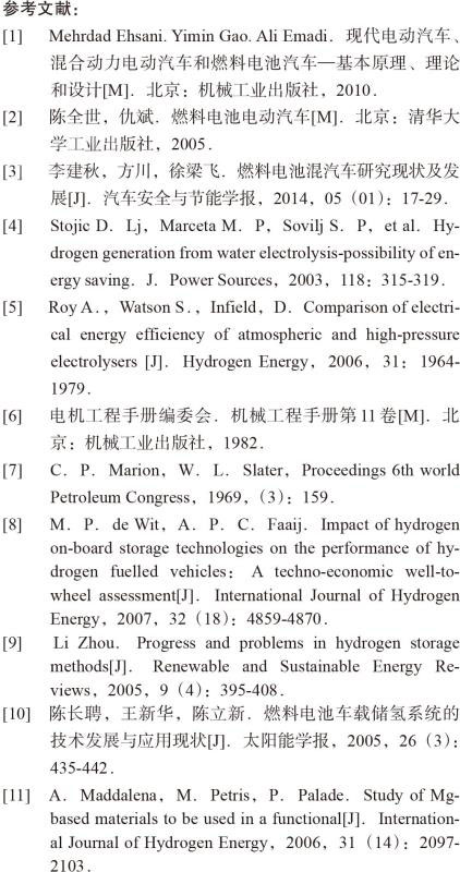氫能汽車是一種典型的新能源汽車,其以氫為主要能量。一般內(nèi)燃機(jī)通常采用注入柴油或汽油的方法,而氫能汽車則改為采用H2。氫燃料電池則是用燃料電池和電動(dòng)車取代了一般的引擎。氫燃料電池借助電化學(xué)反應(yīng)將燃料(H2和O2)直接轉(zhuǎn)變成電能的一種原電池[1],該過(guò)程不涉及熱機(jī)做功和燃燒,不受卡諾循環(huán)的限制[2],轉(zhuǎn)化效率高。