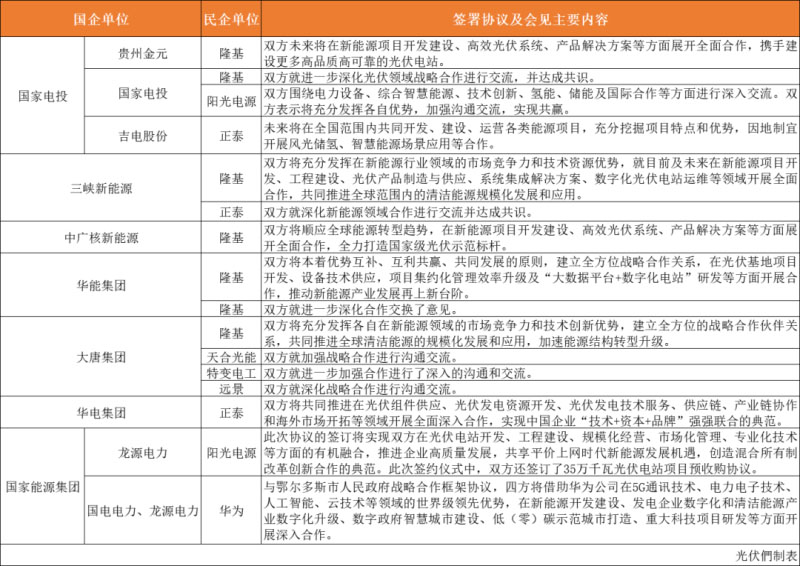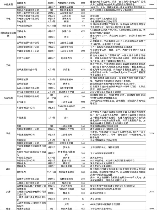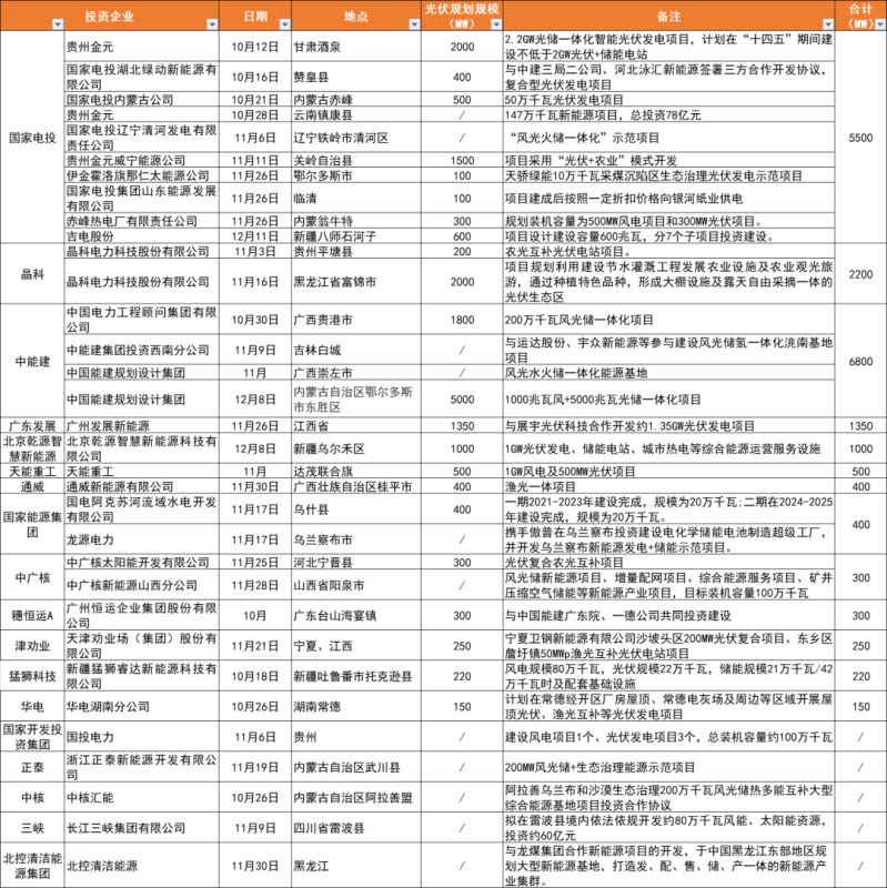 圖片 備注:上表匯總了自10月起各企業(yè)簽署擬投建的光伏項(xiàng)目情況,特別強(qiáng)調(diào)的是,因項(xiàng)目名單眾多,難免有疏漏,上述表格不做排名依據(jù),僅供讀者參考