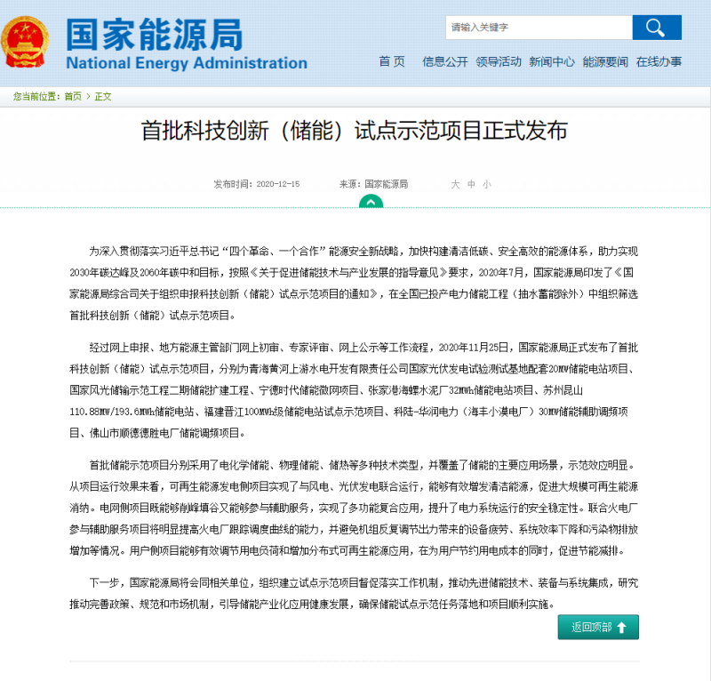 中國(guó)儲(chǔ)能網(wǎng)訊:2020年12月15日,國(guó)家能源局正式發(fā)布“首批科技創(chuàng)新(儲(chǔ)能)試點(diǎn)示范項(xiàng)目”,可再生能源發(fā)電側(cè)、用戶側(cè)、電網(wǎng)側(cè)、配合常規(guī)火電參與輔助服務(wù)等4個(gè)主要應(yīng)用領(lǐng)域共8個(gè)項(xiàng)目入選。由廣州智光儲(chǔ)能科技有限公司(以下簡(jiǎn)稱“智光儲(chǔ)能”)研發(fā)設(shè)計(jì)、供貨、建設(shè),廣東電網(wǎng)能源投資有限公司控股持有,雙方共同投資建設(shè)的“順德德勝電廠儲(chǔ)能調(diào)頻項(xiàng)目”入選此次國(guó)家能源局首批科技創(chuàng)新(儲(chǔ)能)試點(diǎn)示范項(xiàng)目。