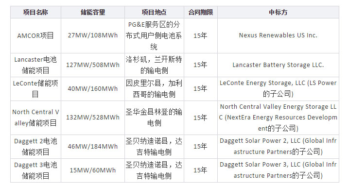 CPUC最新批準(zhǔn)的387MW/1548MWh儲(chǔ)能項(xiàng)目基本信息如下表所示: