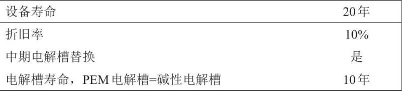 表1是進行LCOH成本分析研究的財務(wù)假設(shè)。值得指出的是,盡管文獻[13,14]表明PEM體系的壽命還不及堿性體系,但隨著燃料電池技術(shù)的飛速發(fā)展,PEM電解堆的壽命已有很大提高,因此在整個分析過程中,設(shè)定PEM電解堆的壽命與堿性體系的相同,電解裝置的電力供給均為穩(wěn)定電源。