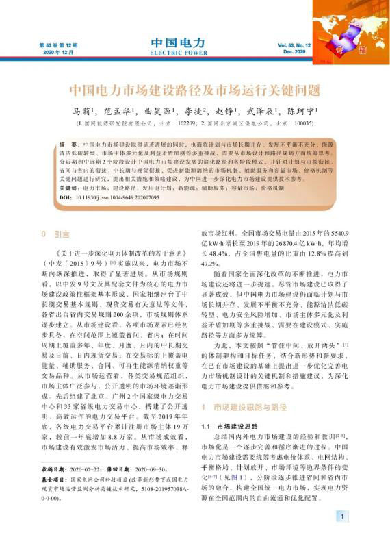 論文還討論了輔助服務(wù)交易機制、常規(guī)火電容量成本回收機制、電力市場價格形成機制等問題。