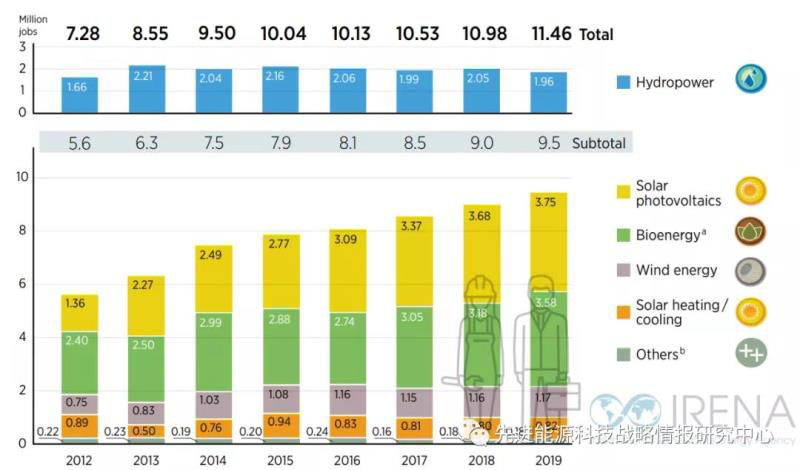 圖1 2012-2019年全球可再生能源行業(yè)從業(yè)人員數(shù)量變化情況(單位:百萬人)