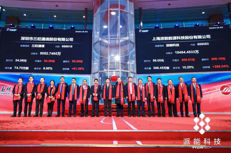 中國儲(chǔ)能網(wǎng)訊:12月30日,上海派能能源科技股份有限公司(以下簡(jiǎn)稱“派能科技”)正式在上海證券交易所科創(chuàng)板掛牌上市,股票簡(jiǎn)稱“派能科技”,股票代碼“688063”,發(fā)行價(jià)56元/股。這是派能科技發(fā)展史上的一個(gè)重要里程碑。截至今日上午10:30分,派能科技漲幅為268.75%,市值達(dá)333.8億。