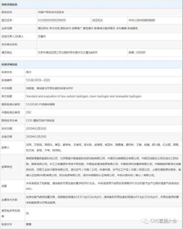 起草單位 國(guó)家能源集團(tuán)氫能科技公司、北京國(guó)氫中聯(lián)氫能科技研究院有限公司、中國(guó)石化銷售股份有限公司、中國(guó)石油股份公司石油化工研究院、國(guó)家電網(wǎng)公司、長(zhǎng)江三峽集團(tuán)科學(xué)技術(shù)研究院、中國(guó)寶武清潔能源有限公司、中國(guó)標(biāo)準(zhǔn)科技集團(tuán)有限公司、中國(guó)船舶邯鄲凈化設(shè)備研究所、河鋼工業(yè)技術(shù)服務(wù)有限公司、液化空氣(中國(guó))公司、林德中國(guó)、空氣化工產(chǎn)品(中國(guó))投資公司、上海環(huán)境能源交易所、南德認(rèn)證檢測(cè)(中國(guó))有限公司、陽光電源有限公司、深圳華測(cè)國(guó)際認(rèn)證有限公司、中標(biāo)興質(zhì)科技(佛山)有限公司。