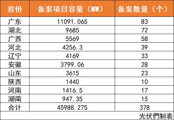 此外,從省份來看,廣東、湖北、廣西、河北、遼寧等省份倍受投資企業(yè)的青睞。其中廣東省以83個項(xiàng)目、11.09GW規(guī)模位列所統(tǒng)計的19省備案數(shù)量及規(guī)模第一。目前,湖北于下半年備案項(xiàng)目已突破過9GW,廣西、河北、遼寧備案超4GW,安徽、山東省項(xiàng)目也已突破3GW。