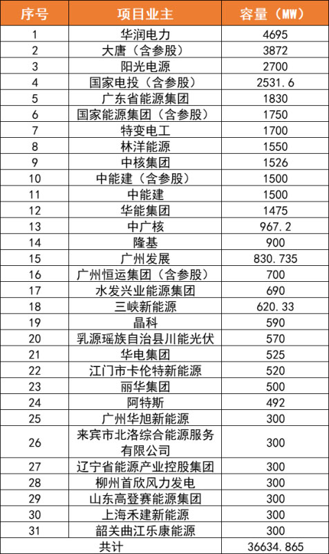 備注:表中僅列出所統(tǒng)計電站項(xiàng)目總?cè)萘砍?00MW的業(yè)主名單;特別強(qiáng)調(diào)的是,上述項(xiàng)目來源于項(xiàng)目審批監(jiān)管平臺,因項(xiàng)目名單眾多,難免有疏漏,上述表格不做排名依據(jù),僅供讀者參考。