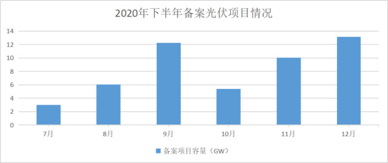 在各發(fā)電企業(yè)陸續(xù)加大新能源投資開發(fā)力度之后,光伏電站項(xiàng)目資源爭奪戰(zhàn)一觸即發(fā)。據(jù)光伏們統(tǒng)計,2020年下半年以來,在競價項(xiàng)目外,有超49GW地面光伏電站項(xiàng)目已完成備案(具體名單見文末),其中僅12月備案規(guī)模便已超13GW。