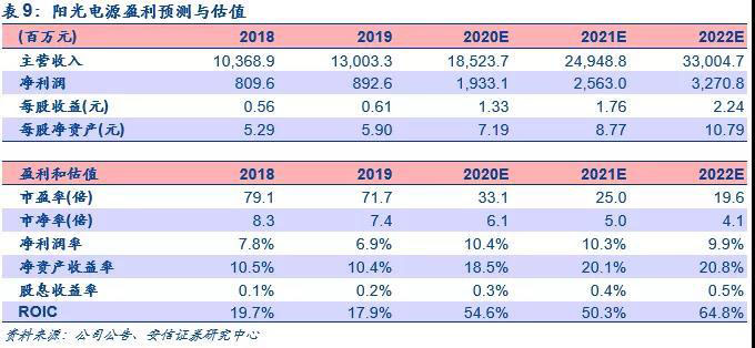 儲能市場前景廣闊,儲能逆變器業(yè)績有望持續(xù)高增。隨著光伏新能源利用的日益普及,光伏發(fā)電的波動性特征以及企業(yè)調(diào)峰調(diào)頻成本考慮,未來光伏發(fā)電將越來越多的配備儲能設備,光伏儲能逆變器將成為行業(yè)的重要發(fā)展方向之一。根據(jù)招股說明書信息,公司于2015年推出ES系列單相光伏儲能混合逆變器后不斷豐富產(chǎn)品品類,近年來儲能逆變器出貨量和營收持續(xù)高增,其中2019年公司實現(xiàn)儲能逆變器銷量1.47萬臺,同比增長132.2%,戶用儲能逆變器出貨量全球市場排名第一位,市場占有率為15%,實現(xiàn)營收1.08億元,同比增長147.8%。未來隨著儲能市場的快速發(fā)展,公司儲能逆變器業(yè)績有望保持高增狀態(tài)。