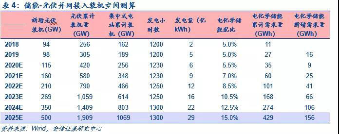 3)當前按4%儲能配比估算,長期應達到理論水平10%;
