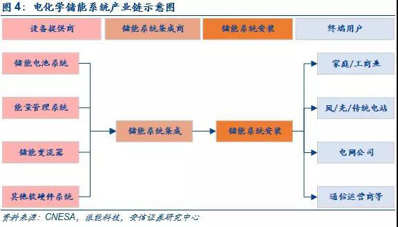 ■概覽:電化學儲能產(chǎn)業(yè)鏈由設備提供商、儲能系統(tǒng)集成商和儲能系統(tǒng)安裝商組成,在電力系統(tǒng)中應用場景廣泛。電化學儲能產(chǎn)業(yè)鏈一般是由系統(tǒng)集成商對整個儲能系統(tǒng)的設備進行選型,外購或自行生產(chǎn)儲能電池系統(tǒng)、儲能變流器及其他電氣設備后,匹配集成給下游的安裝商,安裝商在安裝施工后最終交付終端用戶。