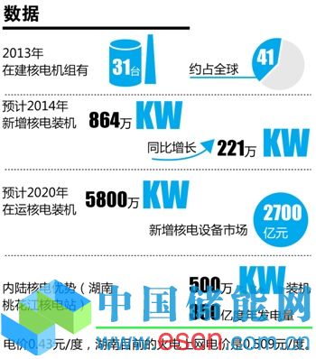 今年1月20日,國(guó)家能源局下發(fā)了《2014年能源工作指導(dǎo)意見(jiàn)》(下稱《意見(jiàn)》),其中明確要求,2014年,新增核電裝機(jī)864萬(wàn)千瓦,較之2013年實(shí)際新增221萬(wàn)千瓦,增加近三倍。