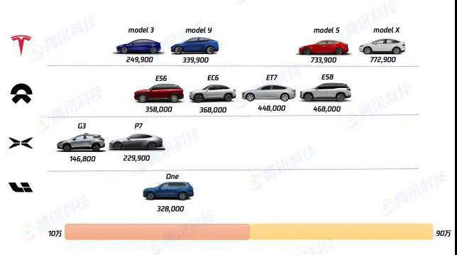 而因為尚處于創(chuàng)業(yè)初期,國內的三家造車新勢力都不約而同的將產品集中在了一個相對窄的用戶區(qū)間,蔚來鎖定30-60萬的中大型車市場,小鵬鎖定10-20萬的中型車市場。