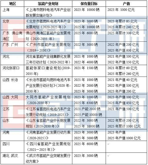 與此同時,2020年以來,北京、廣東、上海、山東、河北等省市紛紛發(fā)布?xì)淠墚a(chǎn)業(yè)中長期發(fā)展規(guī)劃及實施方案,加快氫能產(chǎn)業(yè)布局及發(fā)展,氫能產(chǎn)業(yè)有望成為地方經(jīng)濟(jì)增長的新動能。