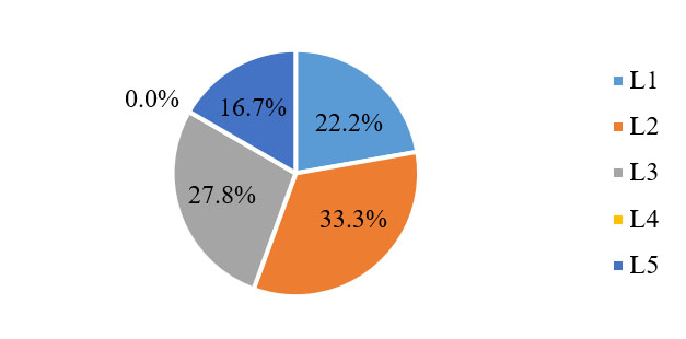 目前,企業(yè)在效益層面的發(fā)展水平相對均衡,但總體偏低。有16.7%的企業(yè)已達(dá)到L5級,但是處于L3、L2、L1級的企業(yè)分別占比27.8%、33.3%、22.2%。