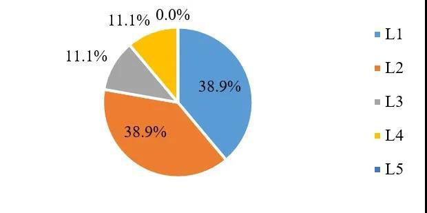 處于應(yīng)用層面L1和L2的企業(yè)都為38.9%,合計77.8%的企業(yè)在應(yīng)用層面處于較初級的水平。同時,目前沒有企業(yè)在應(yīng)用層面的發(fā)展水平達(dá)到L5。因此,應(yīng)用層面的探索整體滯后于設(shè)施層面,處于初期。