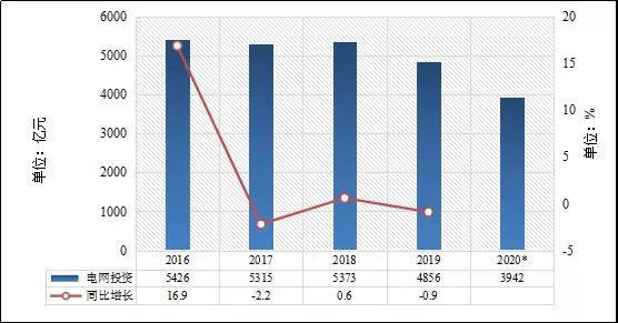 據(jù)國家能源局數(shù)據(jù),2020年1~11月電網(wǎng)工程投資完成3942億元,同比下降4.2%。“十三五”期間,電網(wǎng)投資較“十二五”期間有較大幅度增加。2016~2018年,電網(wǎng)工程投資連續(xù)三年在5000億元以上,分別為5426億元、5315億元、5373億元。2019年有所下降,為4856億元。