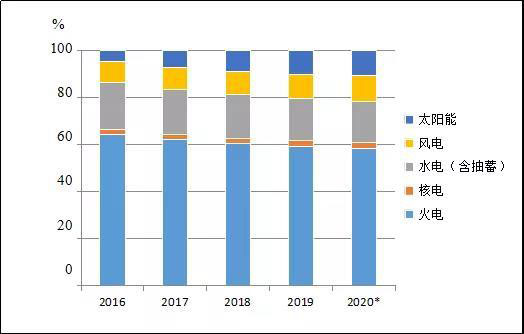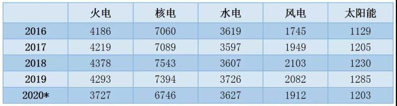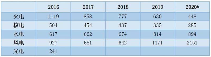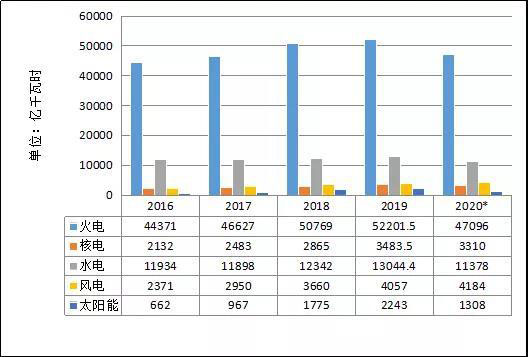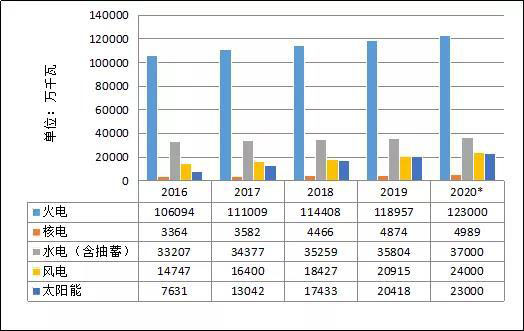1~11月份,全國基建新增發(fā)電生產(chǎn)能力10203萬千瓦,比上年同期多投產(chǎn)2597萬千瓦。其中,水電1079萬千瓦、火電3934萬千瓦(其中燃煤2724萬千瓦、燃氣620萬千瓦)、核電112萬千瓦、風電2462萬千瓦、太陽能發(fā)電2590萬千瓦。水電、火電、風電和太陽能發(fā)電比上年同期多投產(chǎn)740、517、816和795萬千瓦,核電比上年同期少投產(chǎn)297萬千瓦。預計2020年,全國基建新增發(fā)電裝機容量1.4億千瓦左右,其中非化石能源發(fā)電裝機投產(chǎn)9300萬千瓦左右。